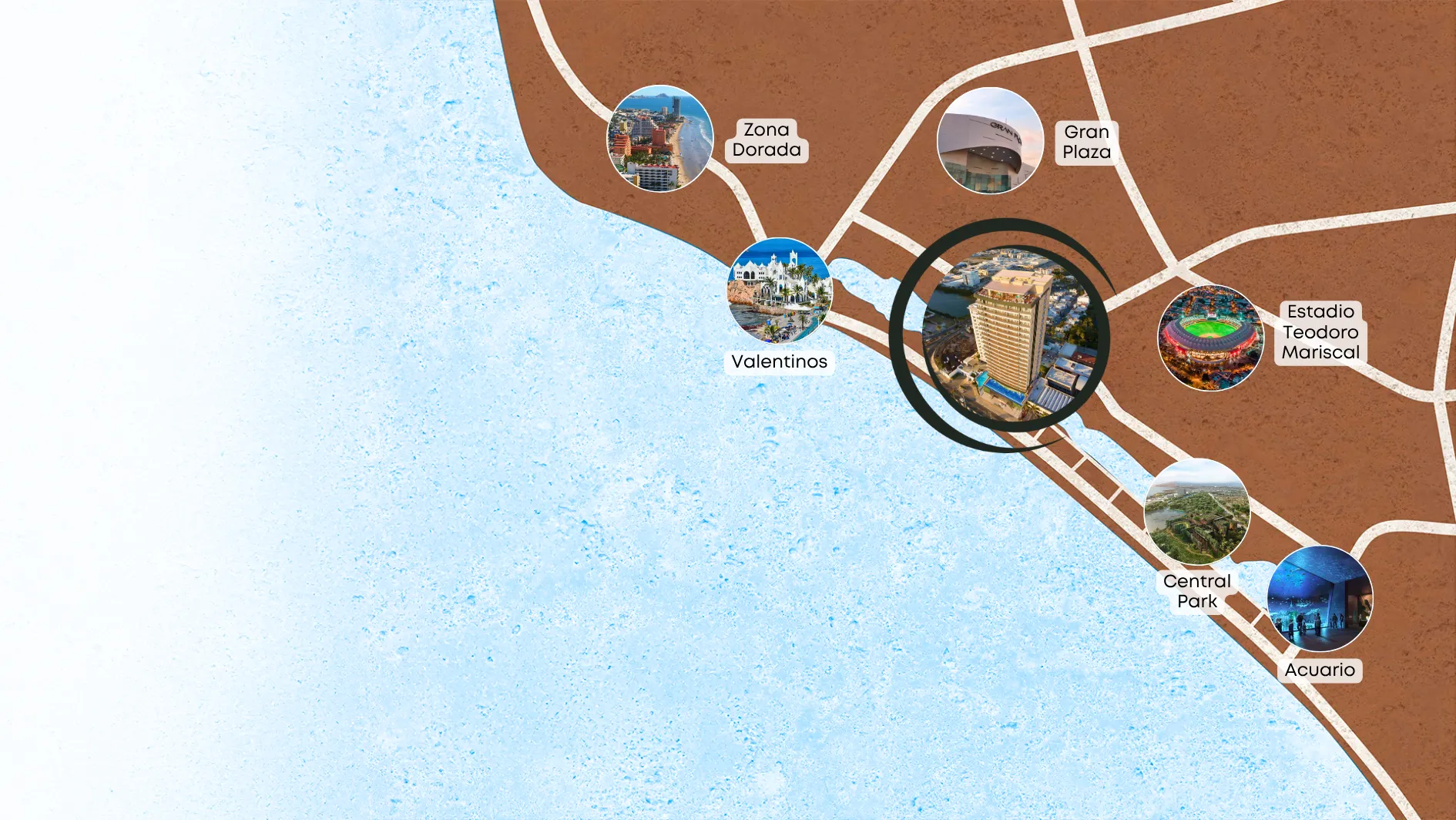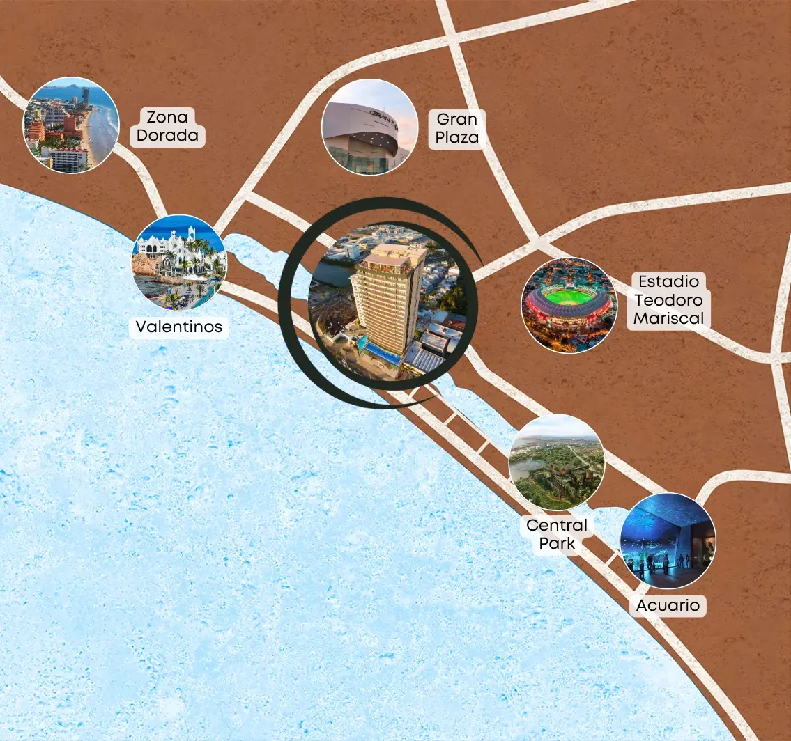 A minutos de Central Park, el Gran Acuario Mar de Cortés, la Zona Dorada y los mejores restaurantes, bares y eventos de la ciudad.